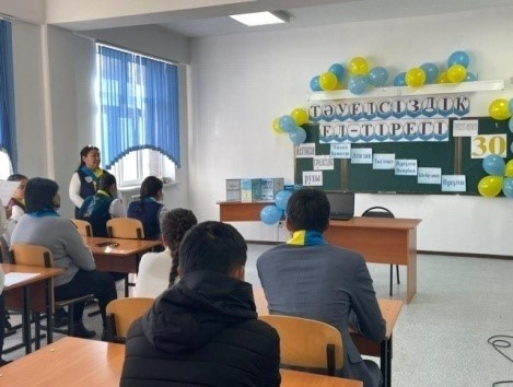 10 желтоқсан күні №1 колледжде тарих пәнінің оқытушысы Нүркеева Назира Атажанқызы «Тәуелсіздік-ел тірегі» атты тәрбие сағатын өткізді. Оқушылардың өткен тарихымызға деген ұлттық көзқарастарын қалыптастыру, бойына отансүйгіштік сезім ұялату, тәуелсіздік жетістіктермен таныстыру мақсатында өткен тәрбие сағат студенттерге жақсы әсер қалдырды