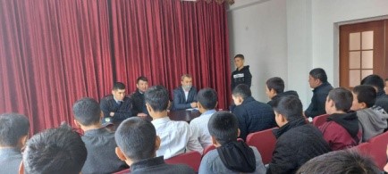 Кәмелетке толмаған жастарға құқықтарымен міндеттерін түсіндіру және қылмыстың алдын алу мақсатында Созақ ауданының полиция бөлімі ЖПҚБ ЮПТ КТІЖ УПИ полиция капитаны Мусалимов Қалижан Бейсенбайұлы және Созақ аудандық учаскелік полиция майоры Бурышов Қанат Маратовичтер 2021 жылдың 13 қараша күні «№1 колледж» МКҚК-да болып 1-курс студенттерімен түсінік жұмыстарын жүргізді.