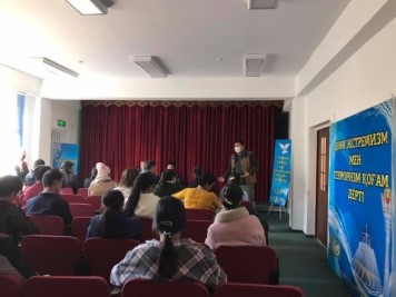Түркістан облысы адами әлеуетті дамыту басқармасына қарасты «№1 колледж» МКҚК-нда 2021 жылдың қазан айының 19 жұлдызы күні діни экстримизм және терроризмнің алдын алу, кереғар діни ағымдардың (секталар) іс әрекеттеріне тосқауыл қою мақсатында «Зайырлы қоғам және руханият» тақырыбында жиналыс болып өтті. Жиынға Түркістан қаласындағы Ахмет Яссауи атындағы ХҚТУ-нің теолгоия факултетінің ұстазы Ботақараев Бауыржан, Түркістан облысы дін істер басқармасы, дін мәселелерін зерттеу орталығының Созақ ауданы бойынша теолог маманы Қосмаханов Қуаныш және колледж директорының тәрбие ісі жөніндегі орынбасары Р.Атажиевтер қатысты.