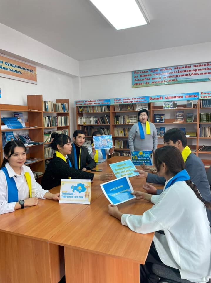 09 желтоқсан күні №1 колледж кітапханасында «Елімнің бақытын тербеткен тәуелсіздік» атты апталықтың екінші күні «Тәуелсіздік тәңір берген тәтті сый» атты дөңгелек үстел өтті. Мақсаты: Білім алушыларды Тәуелсіздік шежіресі Қазақстан дамуымен жылдардың жетістіктері жайлы әңгімелеу, патриоттыққа елін жерін сүйуге насихаттау.