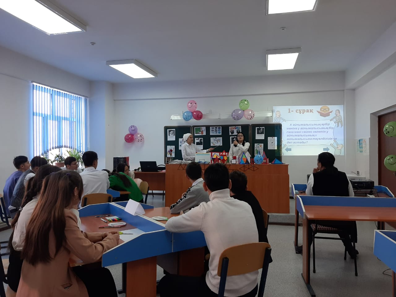 06 желтоқсан күні «Әлемді бағындырған нақты ғылымдар» атты апталығымыздың екінші күні математика пәнінің оқытушысы Нурмаханова Нағима «Математика-физика әлеміне саяхат» тақырыбында І және ІІ курс студенттер арасында математика-физикалық танымдық сайыс-ойын кешін өткізді. Білім алушылардың физика, математика пәндеріне қызығушылығын, ынтасын, зейінін арттыру, алған білімдерін тереңдету мақсатында өткен сайыс 7 кезеңнен тұрды. Іс-шараға студенттер белсене қатысып, «Физика» тобы жеңімпаз атанды.